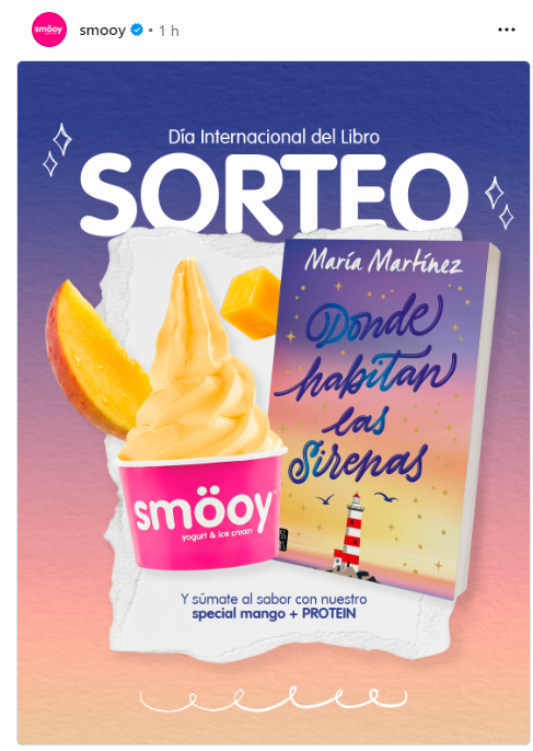 Smöoy, franquicia dedicada desde hace más de dieciséis años a la fabricación y venta de yogur helado, quiere celebrar el Día Internacional del Libro impulsando el fomento de la lectura en la sociedad y especialmente entre los más jóvenes. Por este motivo, la compañía anima tanto a clientes, como a aquellos que aún no lo son, a participar en un sorteo en el que los premios son dos ejemplares del libro Donde habitan las sirenas, de la escritora María Martínez (@mariamartinez.itsme), acompañados de su especial Mango+Protein.